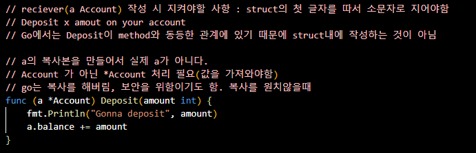답은 아니다. go에서는 매개변수로 Account를 받아왔을때 복사본을 만들어버린다.